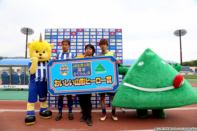 この試合のおいしい山形ヒーロー賞に選ばれたのはゴールを決めた二人です。
