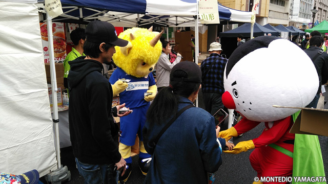 JA全農山形さんのブースで、おこめんジャーのはえぬきんと一緒におにぎり配りを行いました。
