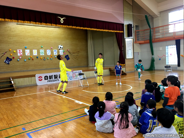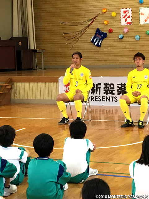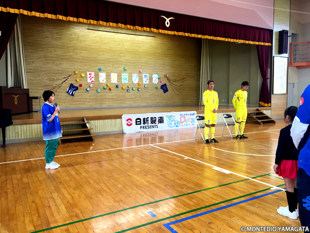 東根市立長瀞小学校の夢クラスにNo.3栗山直樹選手とNo.17中村駿選手が伺いました。