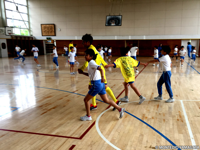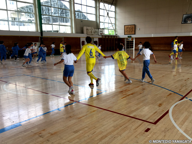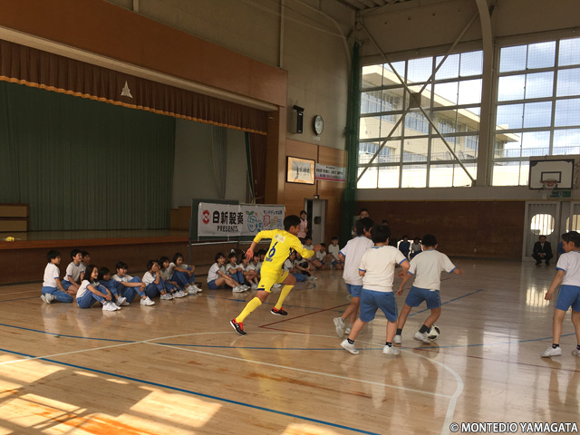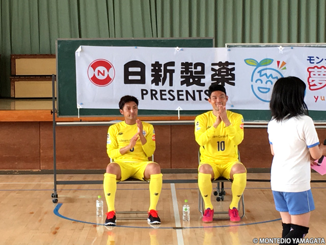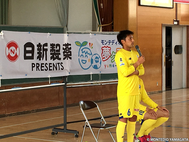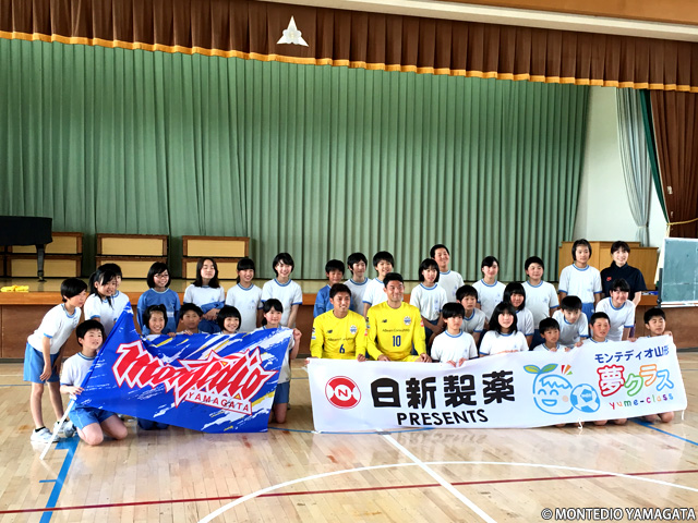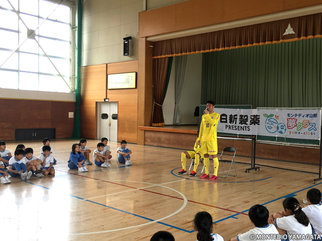 「日新製薬PRESENTS 夢クラス2018」初日となるこの日はNO.6山田拓巳選手NO.10瀬沼優司選手が寒河江市立南部小学校へ伺いました。