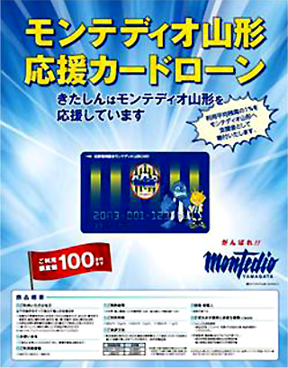 弊社スポンサー・正会員の北郡信用組合様より、「北郡信用組合モンテディオ山形応援カードローン」の寄付金を贈呈いただきますのでお知らせします。「北郡信用組合モンテディオ山形応援カードローン」は、ご利用平均残高の1%(最高50万円)がチーム強化費として弊社へ寄付されるものです。