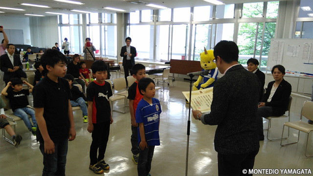 2018年5月12日、ホーム大宮アルディージャ戦を前にしたこの日、恒例のディーオカップ将棋大会が山形県総合運動公園大会議室にて行われました。総勢約50人の小学生が3つの部門に分かれて戦い、しのぎを削りました。