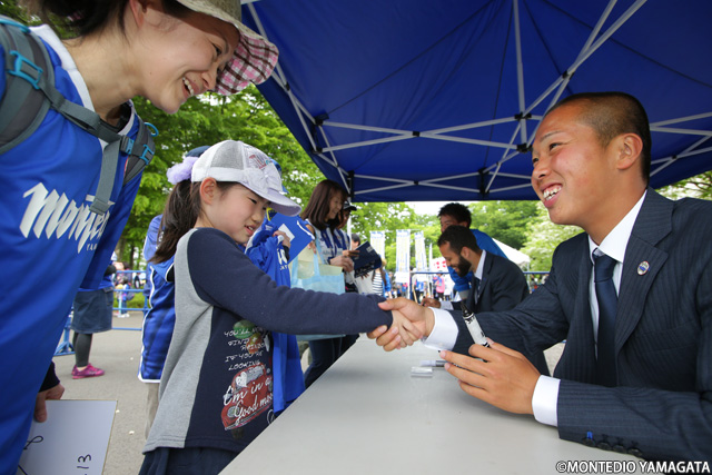 モンテディオ山形2018シーズンシート・ファンクラブ会員限定選手サイン会には、No.8 アルヴァロ ロドリゲス選手とNo.22 中村駿太選手の笑顔には定評のある二人が登場。参加された皆さんも笑顔になります。