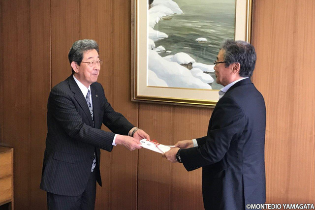 「県民、子供達の夢の模範となるモンテディオ山形、今年必ず昇格を果たし一致団結でフロントも頑張って頂き実現してほしい」と、熱く、素晴らしいお言葉を頂戴いたしました。