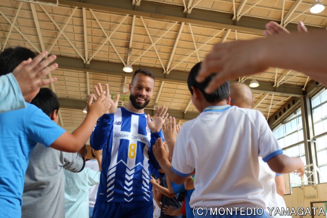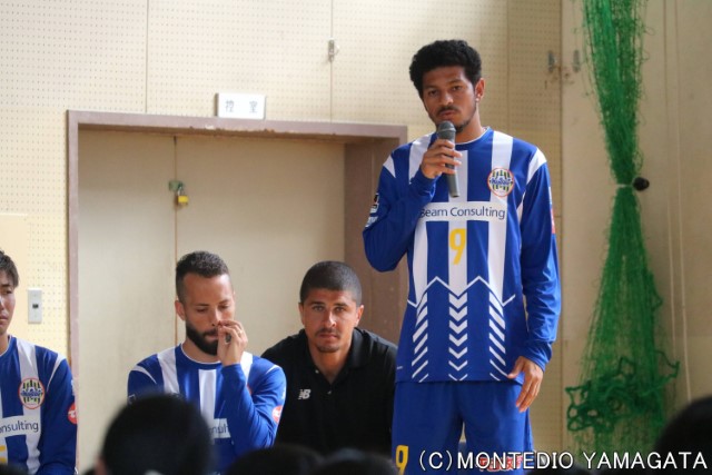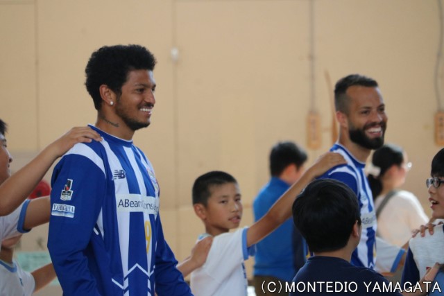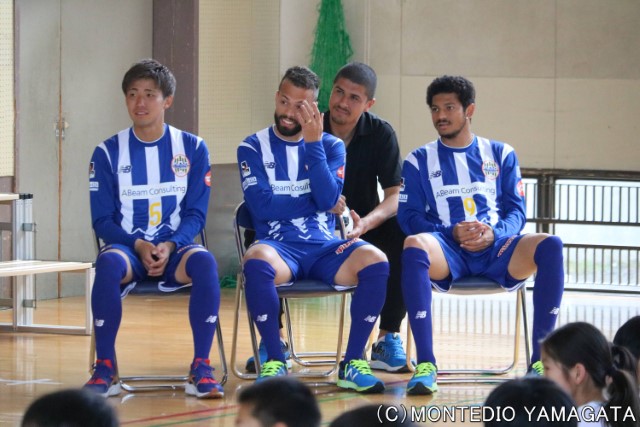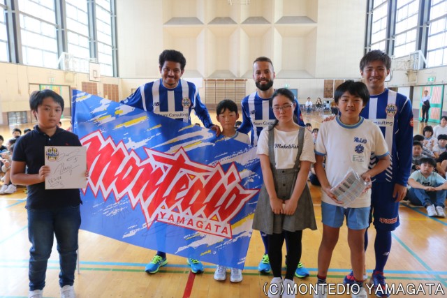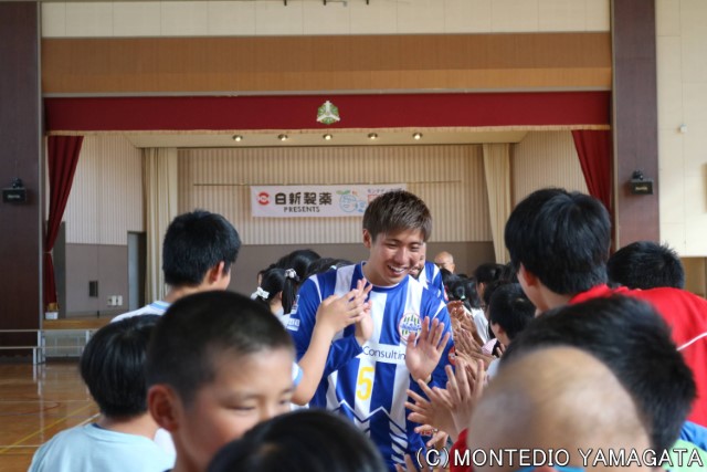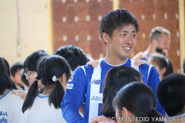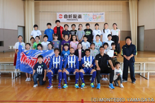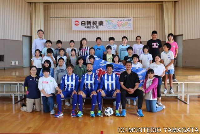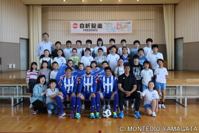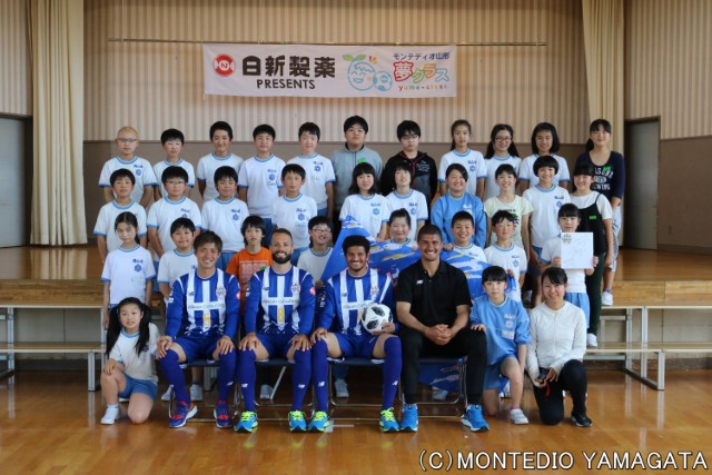 2018年5月24日、茂木力也選手、アルヴァロ・ロドリゲス選手、フェリペ・アウベス選手が山形市立滝山小学校6年生122名が参加した日新製薬Presents夢クラスを訪れました。
