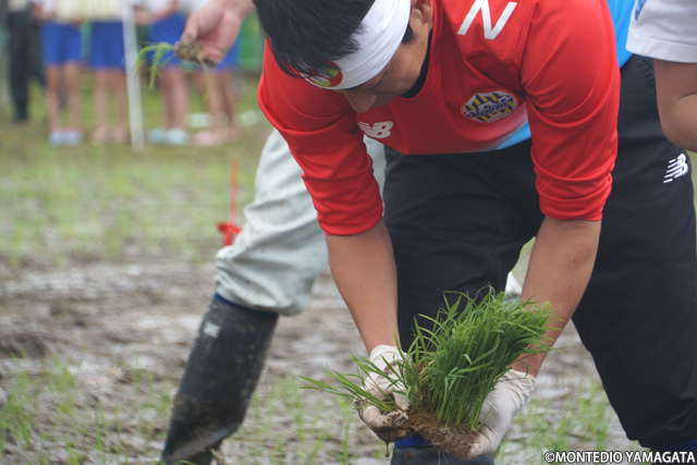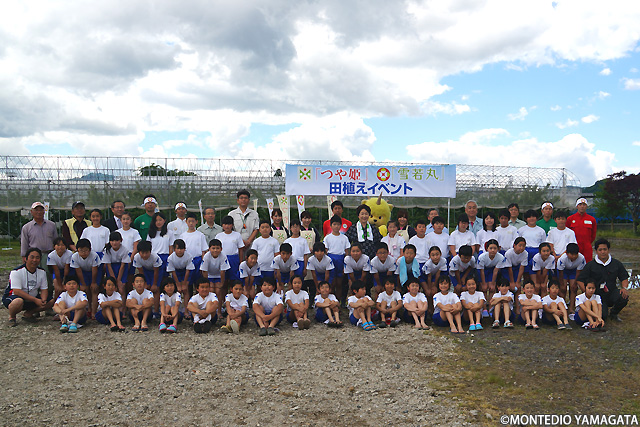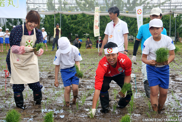 2018年5月24日(木)に山形市松原で、デビュー9年目を迎える 「つや姫」の全国トップブランド評価の浸透と今年秋に本格デビューする 「雪若丸」の認知度向上を図るため開催された田植えイベントにモンテディオ山形ジュニアユース村山 秋葉勝コーチとディーオが参加させていただきました。