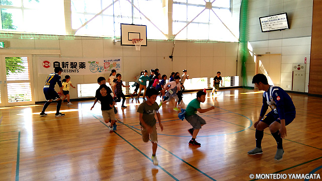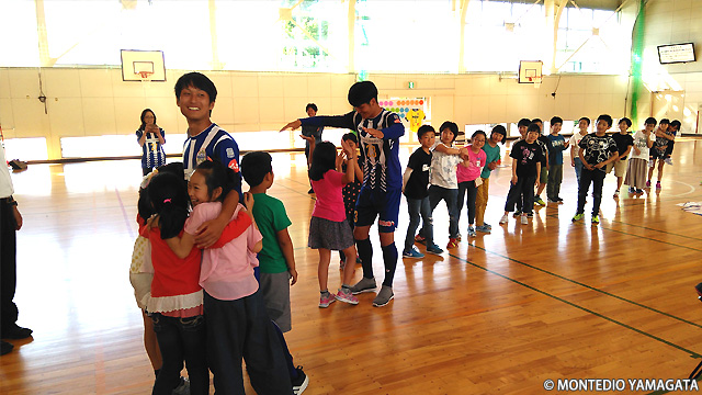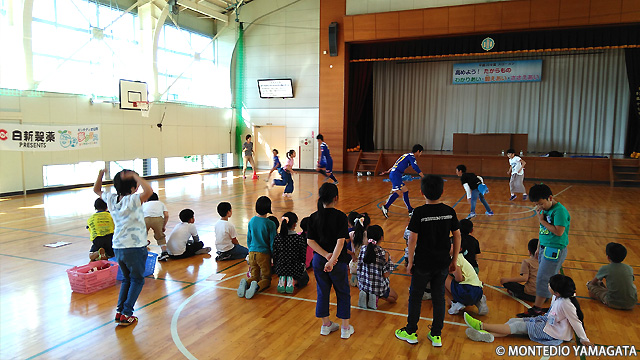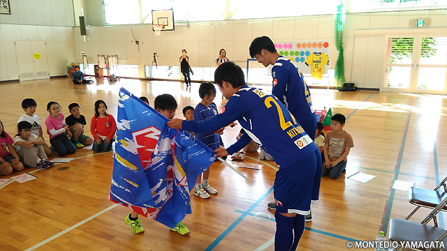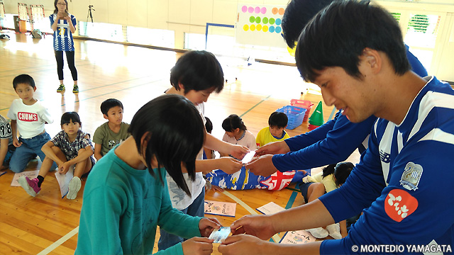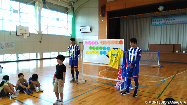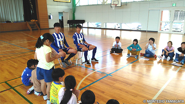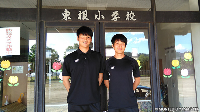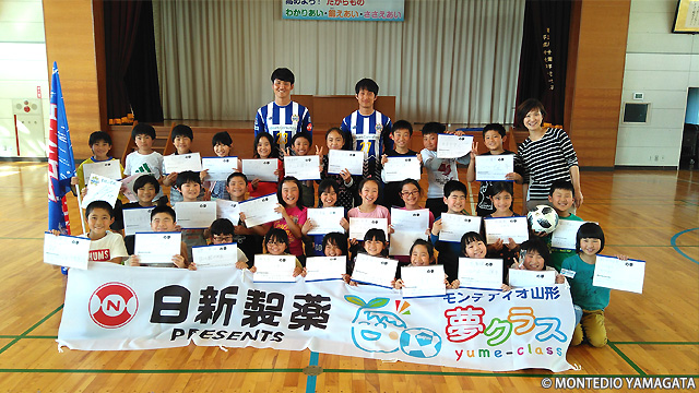 日新製薬PRESENTS夢クラス、2018年5月24日五月晴れとなったこの日はモンテディオの選手たちが県内4か所の小学校を訪問しましたが、白鷹町立東根小学校には北川柊斗選手と熊本雄太選手が訪問しました。