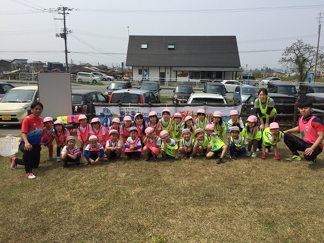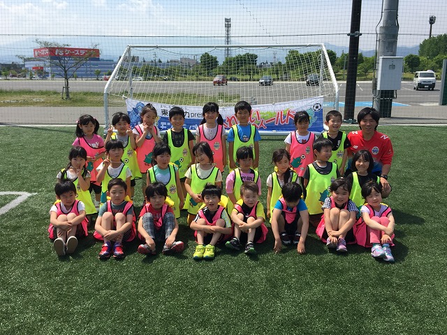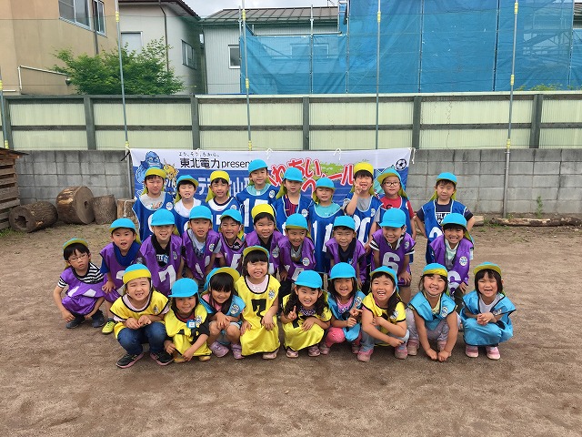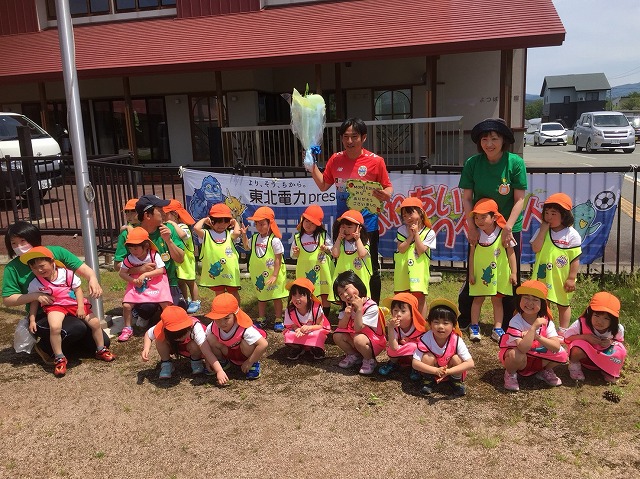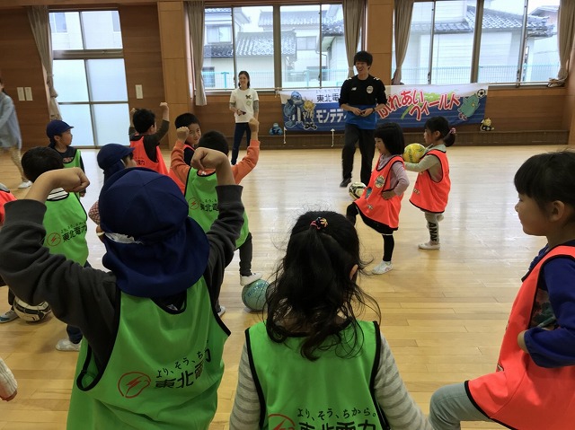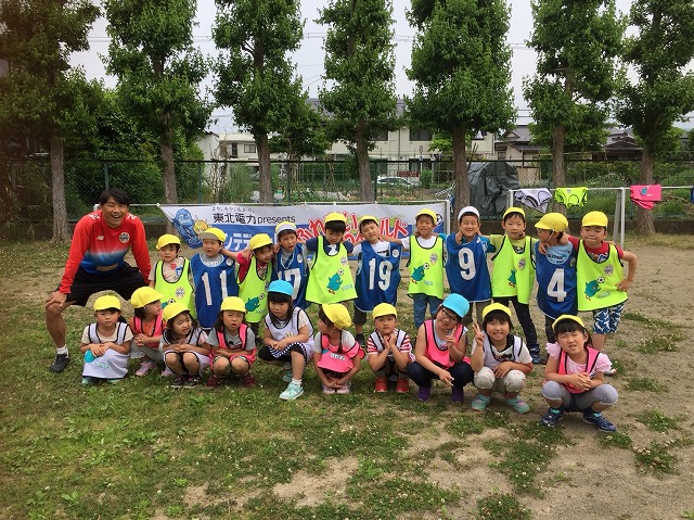 東北電力presentsふれあいフィールドでは地域貢献活動の一環として、幼稚園、保育園を対象にアカデミーコーチを派遣し実施しているサッカー教室です。