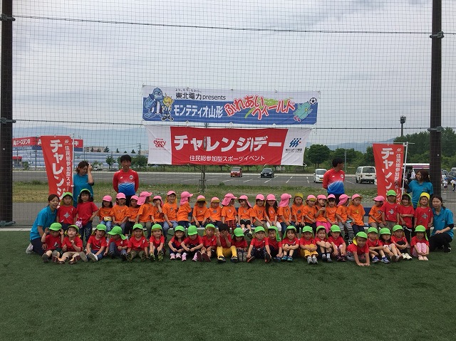 【東北電力presentsふれあいフィールド】みどり幼稚園(鶴岡市)/パリス保育園(新庄市)/ひがしね保育園(東根市)/さくらんぼ保育園(東根市)/本楯保育園(酒田市)/出羽こども園(山形市)/平田保育園(酒田市)/よつば保育園(尾花沢市)/認定こども園杉の子(山形市)/米沢中央幼稚園(米沢市)/興道北部保育園(米沢市)/中山町チャレンジデー(中山町)/米沢市チャレンジデー(米沢市)/鈴川幼稚園(山形市)