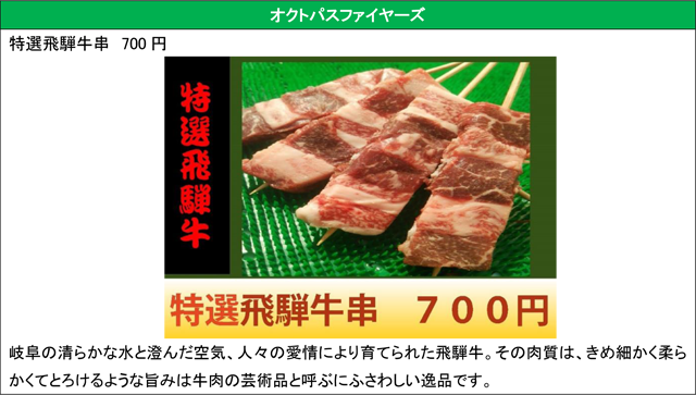 FC岐阜戦限定メニュー