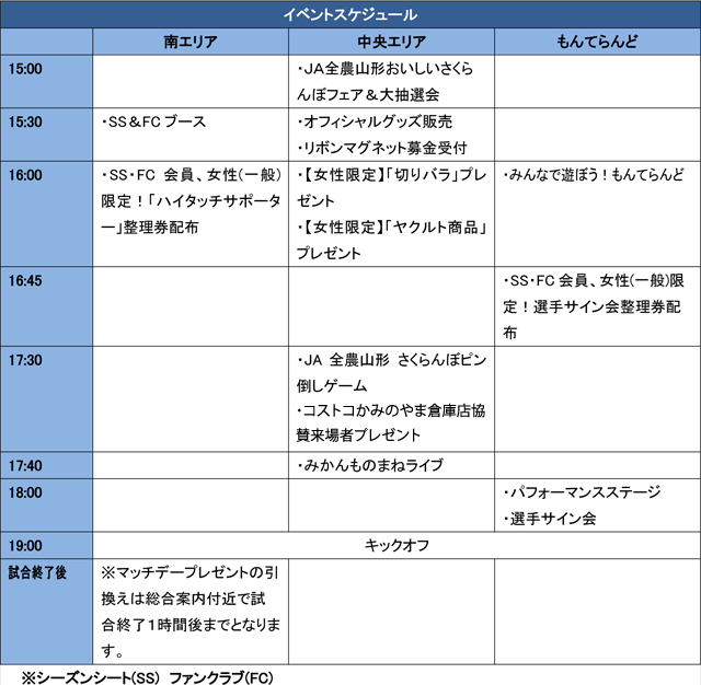 この試合は生産者と消費者を安心で結ぶ懸け橋「JA全農山形」様による、「JA全農山形さくらんぼサンクスマッチ」として開催します。