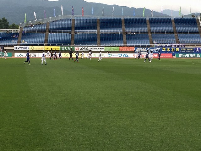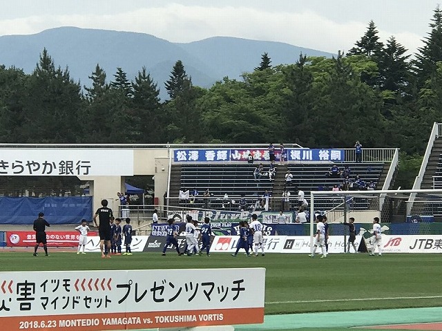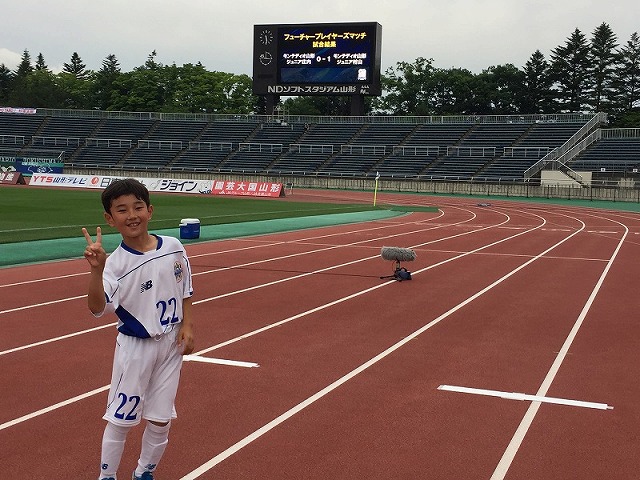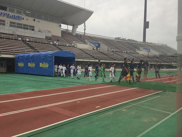 この試合は先日行われた、第4回JCカップU11少年少女サッカー大会山形県大会の決勝に残った2チームの特典として明治安田生命J2リーグvs徳島ヴォルティス戦の前座試合として行われました。