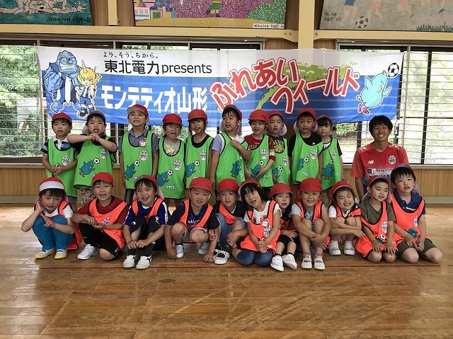 東北電力presentsふれあいフィールドでは地域貢献活動の一環として、幼稚園、保育園を対象にアカデミーコーチを派遣し実施しているサッカー教室です。