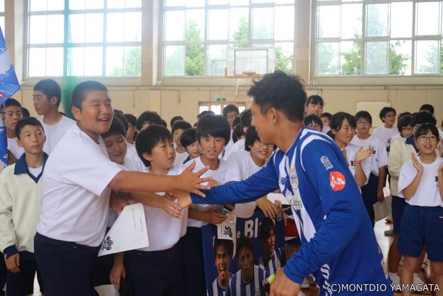 この日の夢クラスの対象は1年生の122人。中には小学校時代からモンテディオ山形を身近に感じていただいた生徒たちも多く、大歓迎を受けなながら夢クラスへと二人の選手は入っていきました。