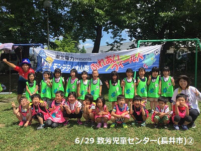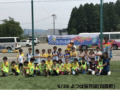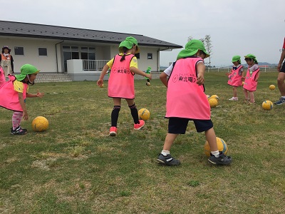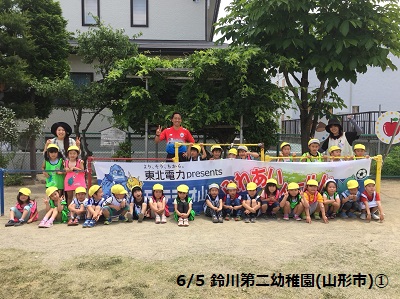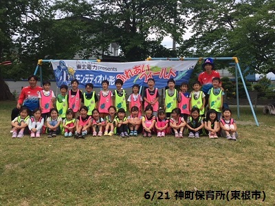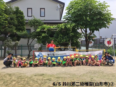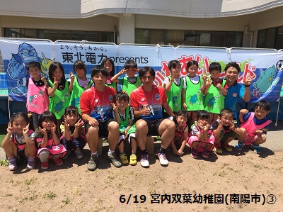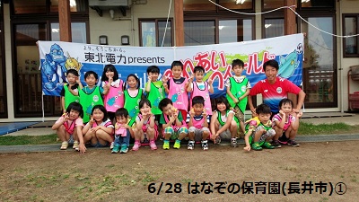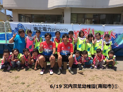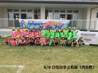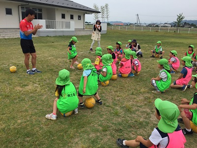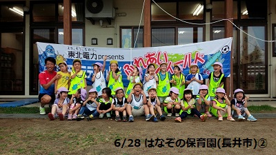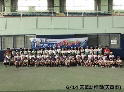 東北電力presentsふれあいフィールドでは地域貢献活動の一環として、幼稚園、保育園を対象にアカデミーコーチを派遣し実施しているサッカー教室です。