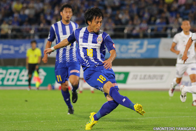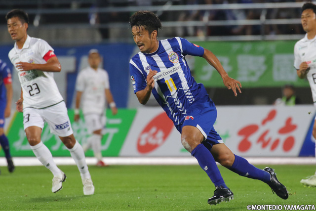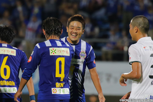 松本怜大選手の今季初ゴール、そしてモンテディオ山形の選手としても初ゴールとなる得点で、さらに優位にゲームを進めることになりました。
