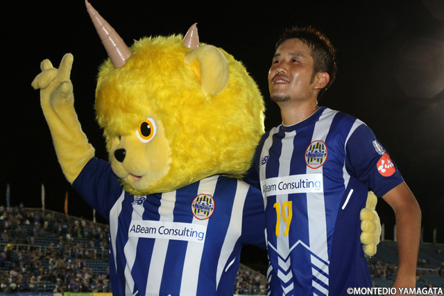 試合終了間際ピッチに立った茂木力也選手。2-0で進んだ試合をそのままクローズする役割をきっちりと果たします。そしてタイムアップ。モンテディオ山形は4連勝でJ2リーグを折り返すことになりました。