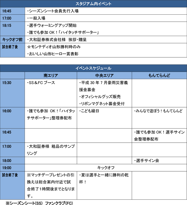 2018明治安田生命J2リーグ第25節 モンテディオ山形vs.ファジアーノ岡山の開催概要を、次の通りお知らせいたします。