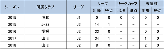 江南南サッカー少年団→クマガヤSC→浦和レッズユース→浦和レッズ→愛媛FC→浦和レッズ→モンテディオ山形→浦和レッズ→モンテディオ山形