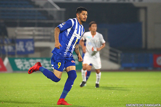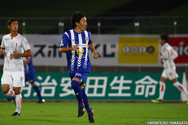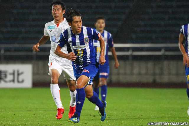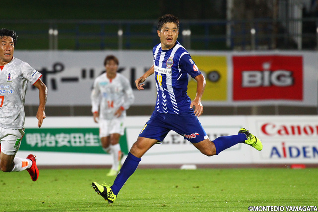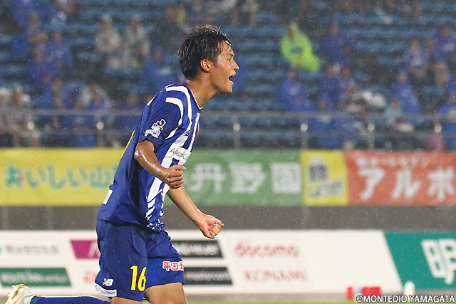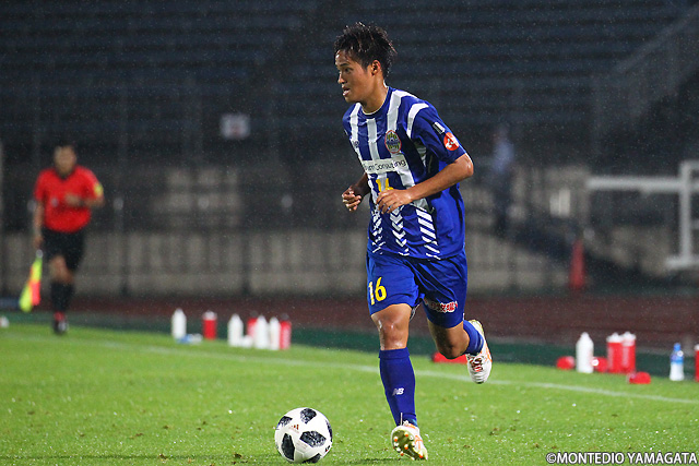モンテディオ山形の選手として初めてNDソフトスタジアム山形のピッチにたった楠神順平選手。シャドーストライカーの位置で高いテクニックを活かしてチャンスメイクをします。