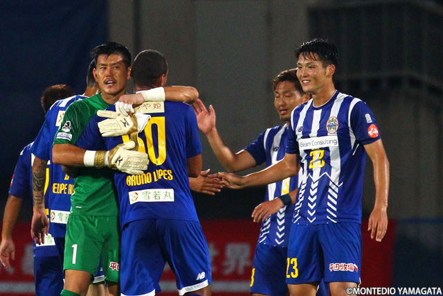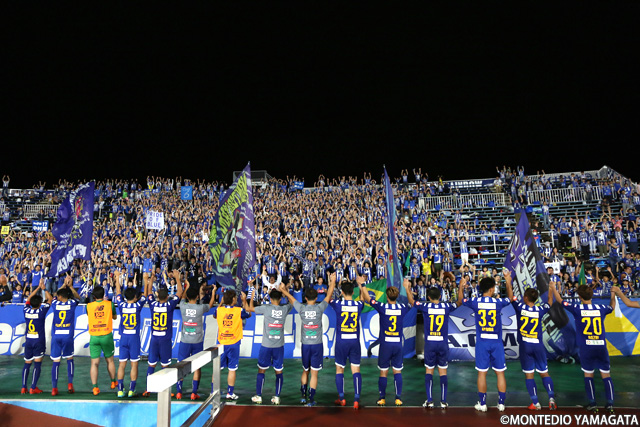 さて次の試合はアウェイゲームとなり、9/9(日)19:00キックオフ vs.レノファ山口FC(会場/維新みらいふスタジアム)となります。また次のホームゲームは9/15(土)19:00キックオフ vs.ヴァンフォーレ甲府(会場/NDソフトスタジアム山形)となります。J1昇格に向けて引き続き熱いご声援をよろしくお願いします。