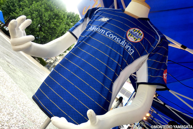 中央エリア レプリカユニフォームブースでは、9/30開催の松本山雅FC戦からホームゲーム3試合において着用する「~米どころ山形~新品種本格デビュー記念ユニフォーム」の予約受付を実施しました。米どころ山形と山形県産米をPRするためのこの記念ユニフォームは、モンテディオブルーのボディに、稲穂をイメージする柄とゴールドのピンボーダーの稲穂が実った黄金色の田園をイメージしています。