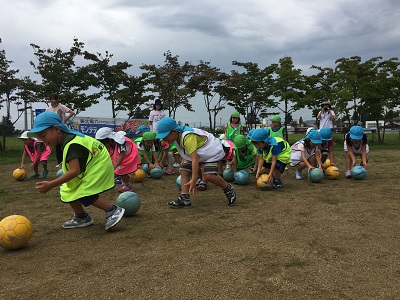 東北電力presentsふれあいフィールドとは地域貢献活動の一環として、幼稚園、保育園を対象にアカデミーコーチを派遣し実施しているサッカー教室です
