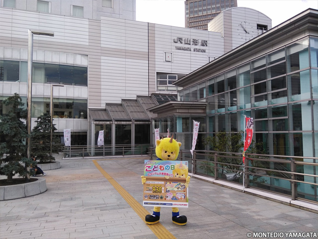 山形駅前放置自転車対策啓発活動「放置自転車はしないでね!ディーオとの約束だよ!」