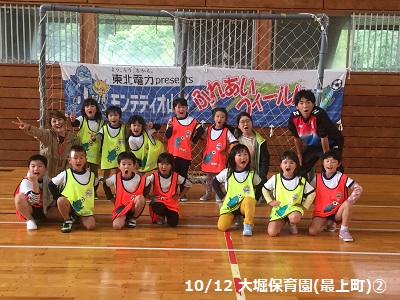 東北電力presentsふれあいフィールドとは地域貢献活動の一環として、幼稚園、保育園を対象にアカデミーコーチを派遣し実施しているサッカー教室です