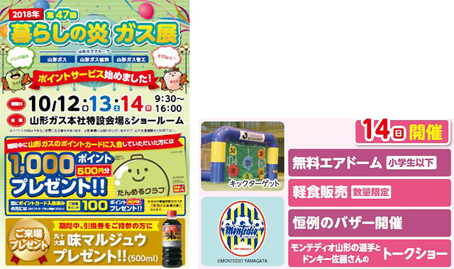 弊クラブスポンサーの山形ガス株式会社様(山形ガスグループ)により行われる「第47回暮らしの炎ガス展」に、モンテディオ山形の所属選手が参加いたしますのでお知らせします。