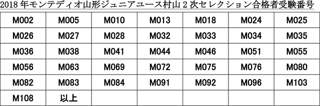 2018 年モンテディオ山形ジュニアユース村山 2 次セレクションにご参加いただきありがとうございました。選考結果を以下の通り発表いたします。