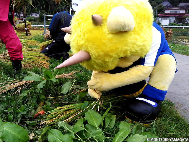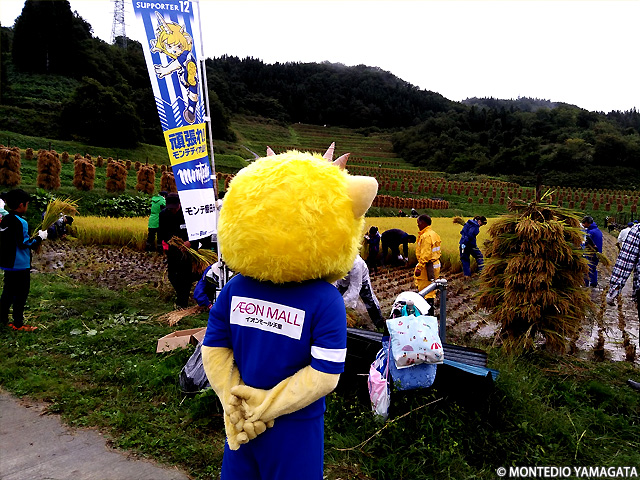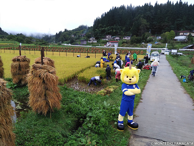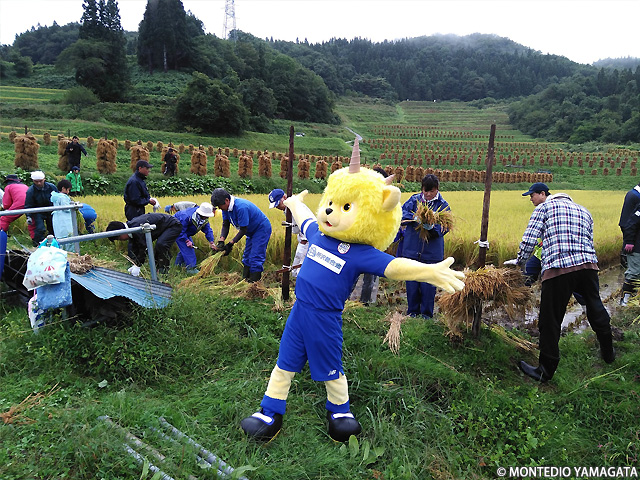 モンテディオ山形は田植えと稲刈り、取入れを一緒になって行い、日本の棚田のある風景を守る活動を積極的に行っております。今年も10月のホームゲームで販売できるように調整しておりますので楽しみにしていてくださいね。