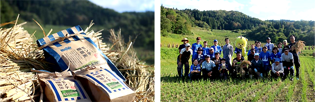 産を再生しようと、モンテディオ山形の選手・スタッフ・サポーターの皆様が地域の人々と一緒に手を取り合い育んだお米です。