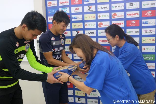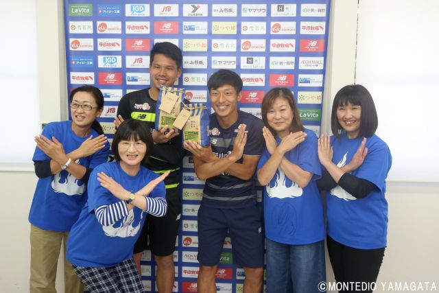 本日2018年10月20日、明日21日からスタジアムで販売される山形県山辺町大蕨地区で栽培された「モンテ棚田米」100kgの贈呈をグループ農夫の会の皆様より頂きました。