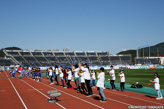 ピッチサイドでは山形県内総合型地域スポーツクラブのキッズダンス教室やパフォーマーが集結し「MONTEキッズダンス・ショー」が行われ、たくさんの子どもたちが日頃練習しているダンスの成果を見せたパフォーマンスで、会場を盛り上げます。