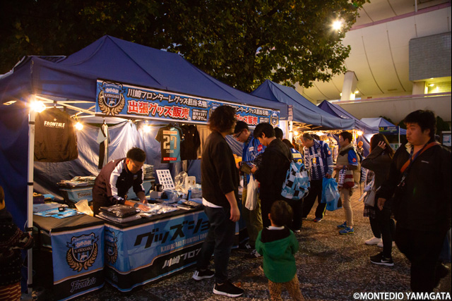 中央広場では川崎フロンターレグッズの出張販売も実施。またモンテディオ山形×川崎フロンターレ限定コラボグッズも販売されましたが、こちらは限定販売ということもあり早々に完売となりました。