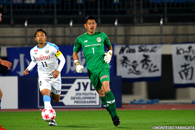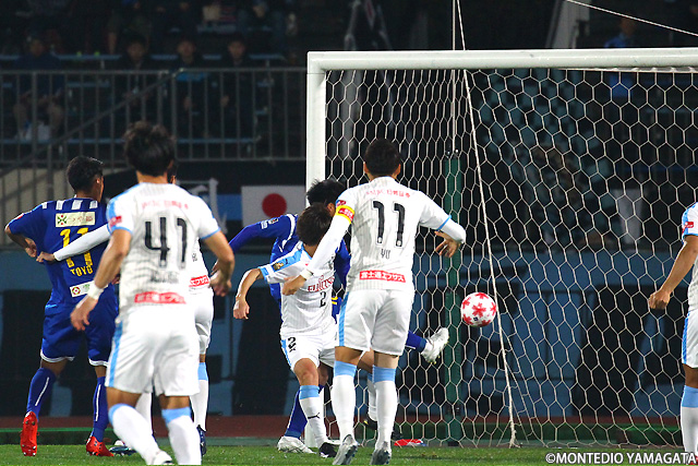 3点のリード、さらに相手ゴールキーパーの退場と状況的には優位に進めそうな形となりますが、さすがに川崎フロンターレはJ1で首位をいくチームだけあり、60分そして70分にゴールを奪われてしまい1点差に詰め寄られます。モンテディオ山形も本田拓也選手を投入し、相手の攻撃に対応をしていきます。
