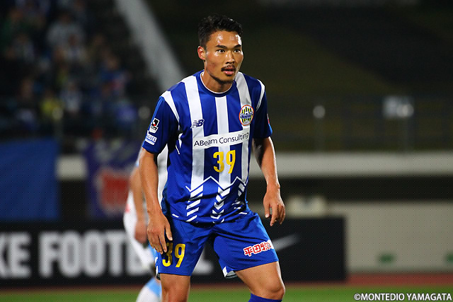 左のウイングバックで起用された古部健太選手。押し込まれる時間が長くなかなか攻め込めない展開の中、しっかりと与えられた守備のタスクをこなします。