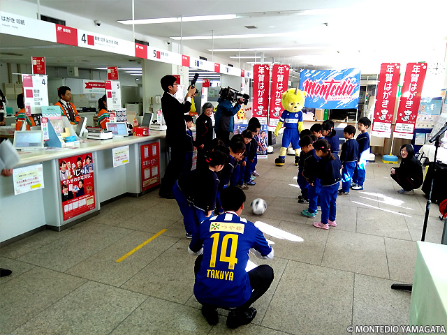 その後は、9時00分にディーオのボールキックのセレモニーで、いよいよ年賀はがきの販売を開始。