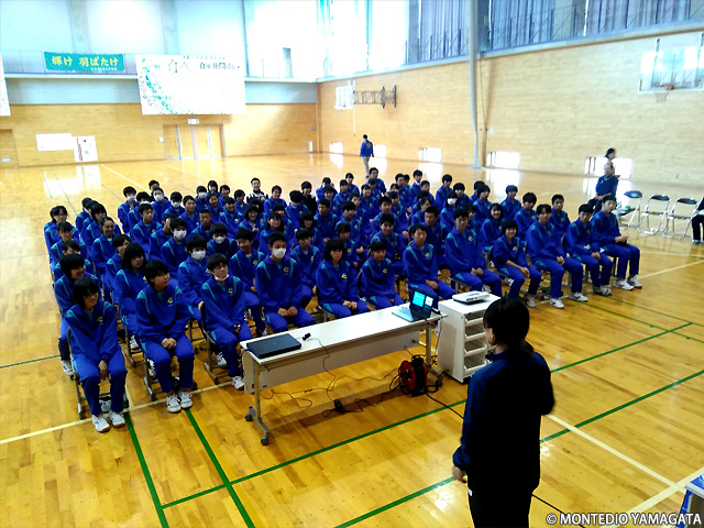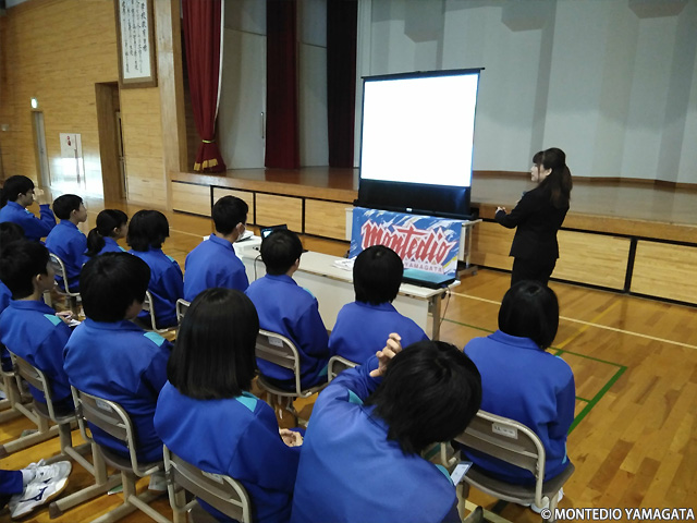 2018年11月9日、モンテディオ山形の食育授業が米沢市立第七中学校で行われ、三年生86名に受講頂きました。