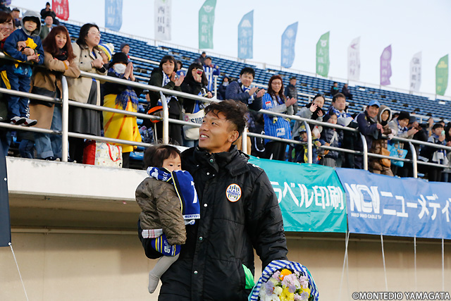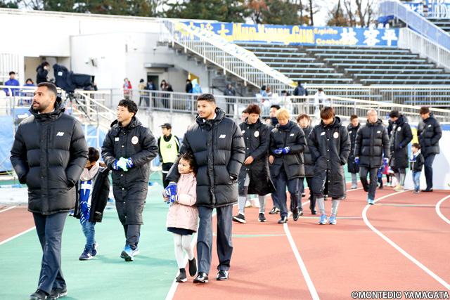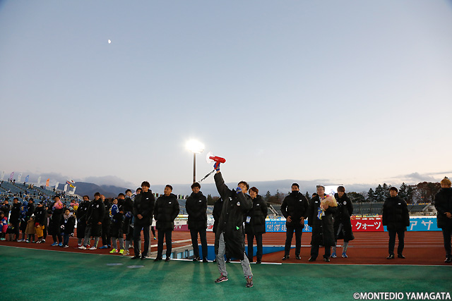 ハーフタイムには初のJFA 第42回全日本U-12サッカー選手権大会出場を決めたモンテディオ山形ジュニア庄内の壮行式が行われ、小さなモンテ戦士に大きな声援が送られます。