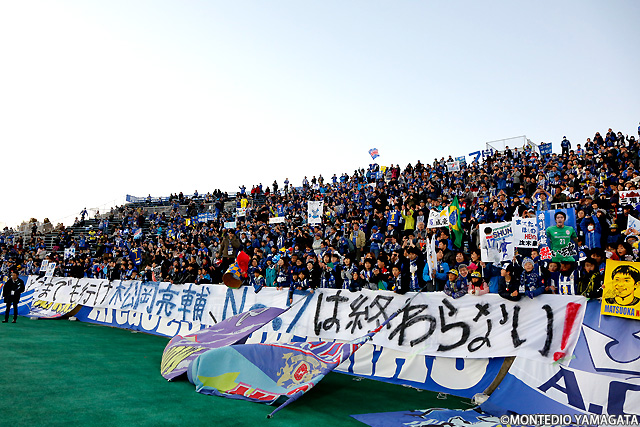 今シーズンも熱いご声援を頂きありがとうございました。残念ながら目標としていたJ1復帰はなりませんでしたが、来季も引き続き指揮を執る木山隆之監督の下、J1昇格を目指し全力で戦い続けますので、変わらぬご支援・ご声援をお願い致します。