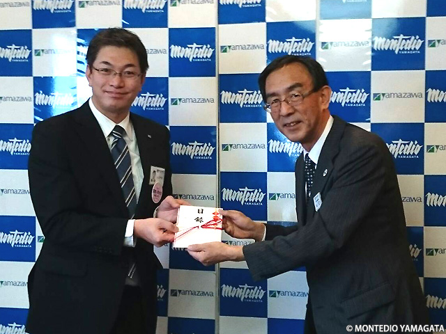 本日2018年12月4日(火)株式会社ヤマザワ様よりモンテディオ山形リボンマグネット募金として