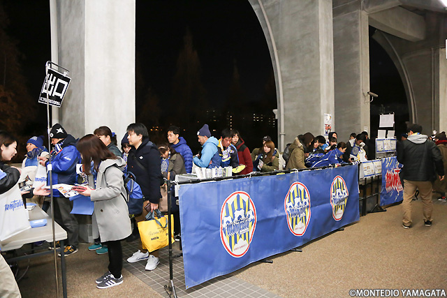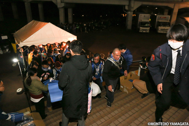 天皇杯準決勝というビッグマッチでのみちのくダービーということもあり、平日のナイトゲームにもかかわらずたくさんのモンテディオ山形サポーターがユアテックスタジアム仙台に集結。ゲートオープン前から気合の入ったサポーターの長い列が出来ていました。