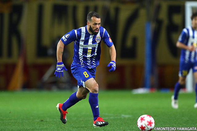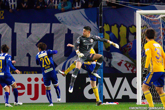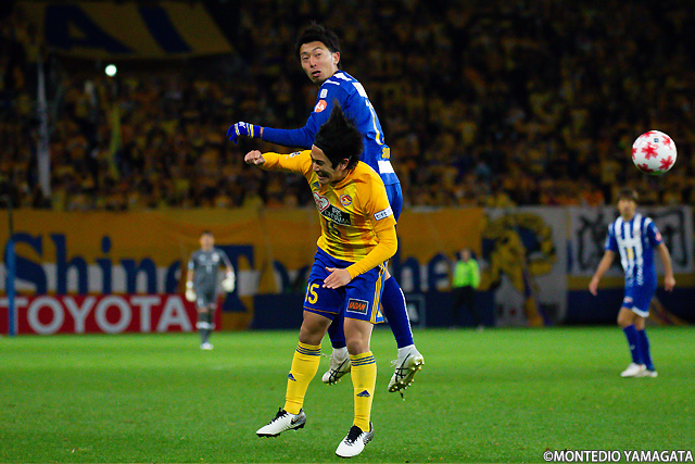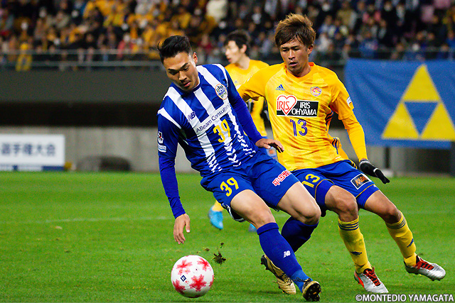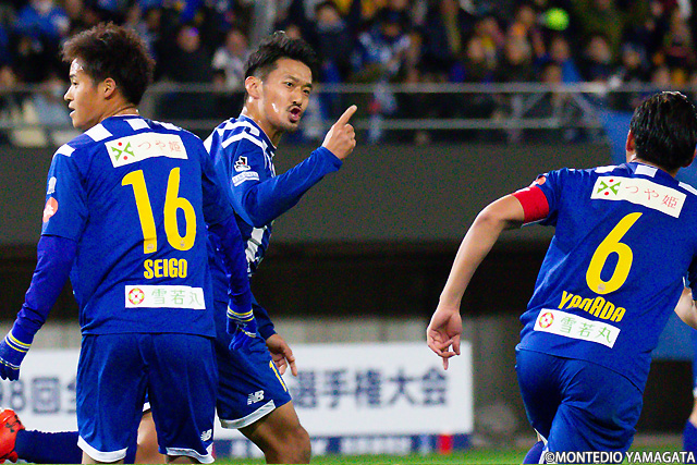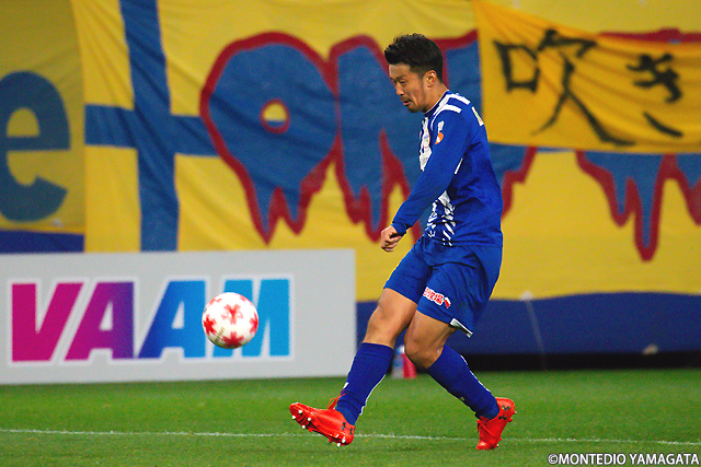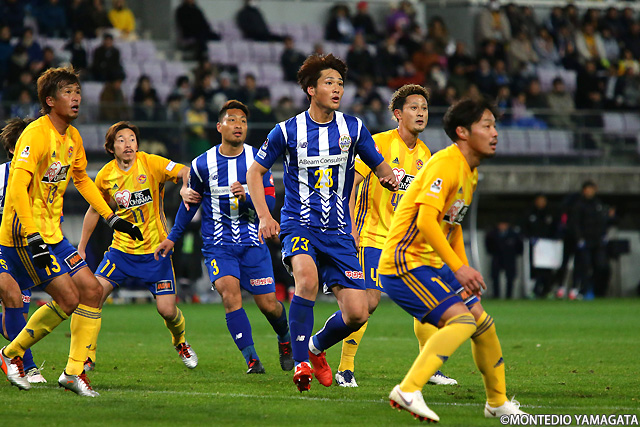 後半は前半と打って変わってモンテディオ山形が攻め込む時間が増えます。またセットプレーのチャンスも増え、熊本雄太選手や栗山直樹選手がゴールを狙います。