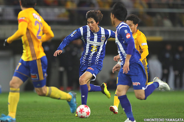 J1チームが相手でも、いつもと変わらぬ落ち着いたプレーで確実にボールをつなぎ、チャンスを作っていく南秀仁選手。
