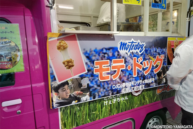 今年は「モテドッグ」が大人気だったCoCo夢やさんが出店。ベガルタ仙台サポーターの方にもNDソフトスタジアム山形のグルメを楽しんで頂きました。