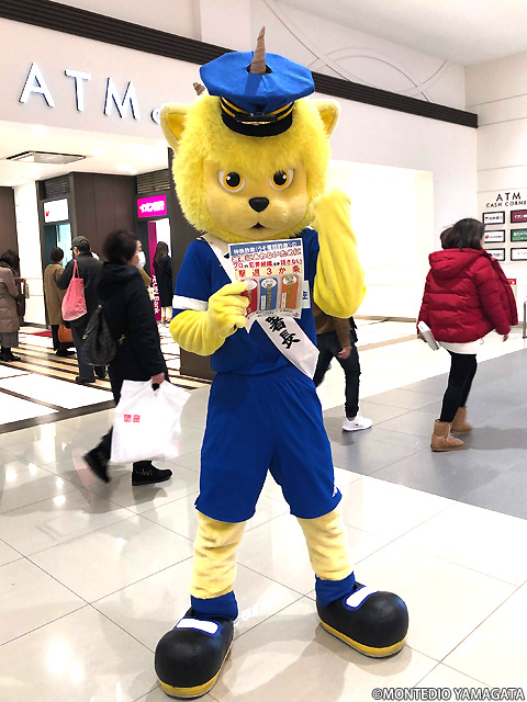 モンテディオ山形マスコットディーオが天童警察署一日署長として活動しました