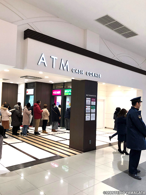 クリスマス、年末へ向けて多くの買い物客で賑わうイオンモール天童、ATMコーナーにも本日はたくさんのお客様がいらっしゃってます。