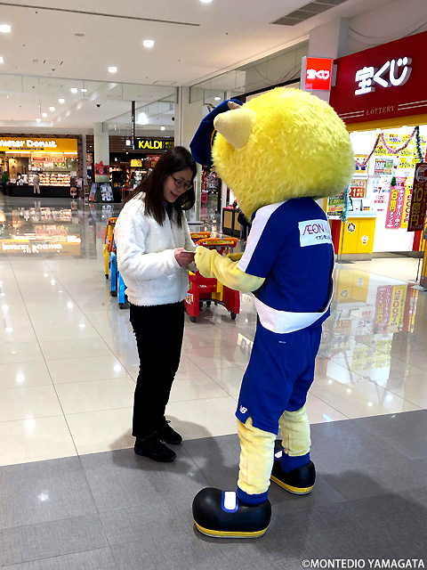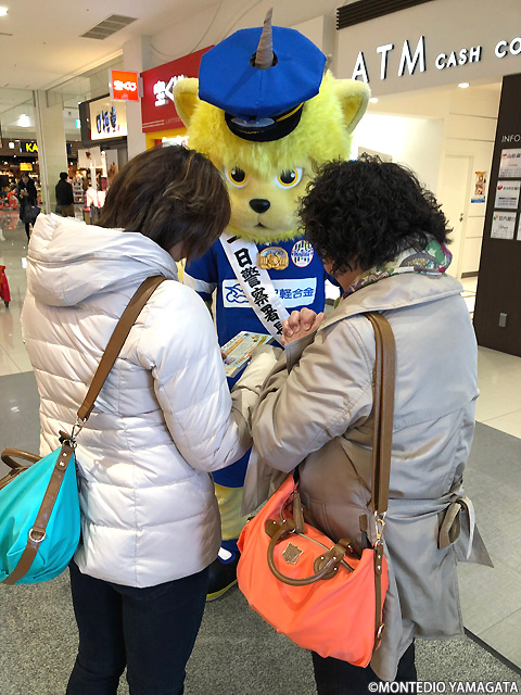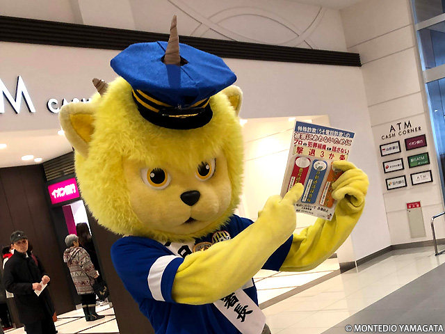 本日、モンテディオ山形マスコットディーオが天童警察署一日署長として「年末警戒強化 うそ電話詐欺被害防止広報」への協力活動をイオンモール天童にて行いました。
